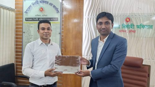 চান্দিনা উপজেলা নির্বাহী অফিসার (ইউএনও) জনাব মোহাম্মদ আশরাফুল হক এর নিকট থেকে উপহার গ্রহণ…